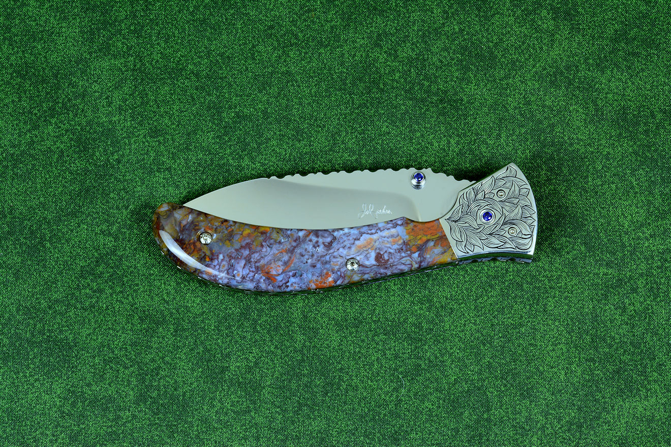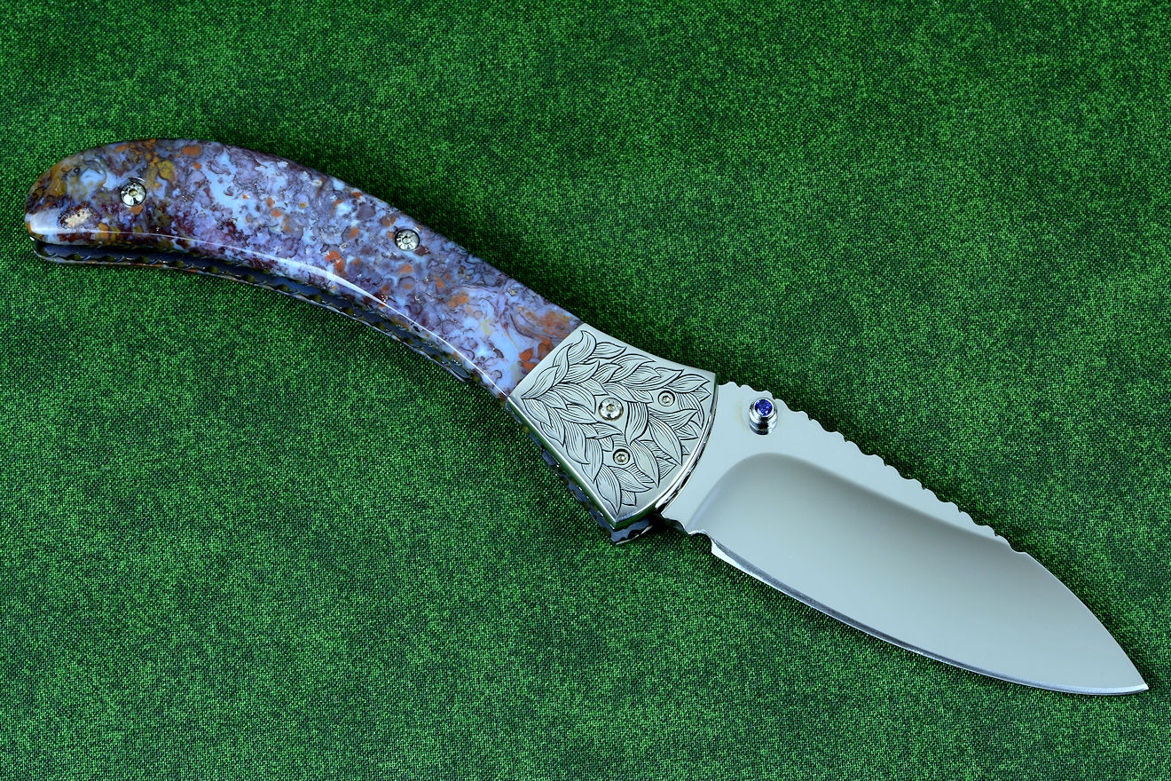 faceted blue amethyst gemstones. I put thumb studs on both sides of the blade